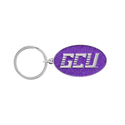 This Fanatic GCU keychain is perfect for your keys! It is metal with a purple strap attaching it to the split ring. On the metal in purple, "GCU" is written. Get this keychain to show off your GCU...
